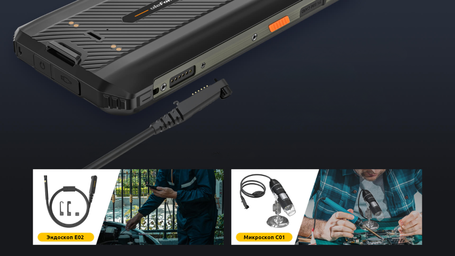 Специальный разъём для подключения эндоскопа (uSmart E02), микроскопа (uSmart C01), и других специальных устройств, повышает мобильность. Разработано для профессионалов широкого круга специальностей.