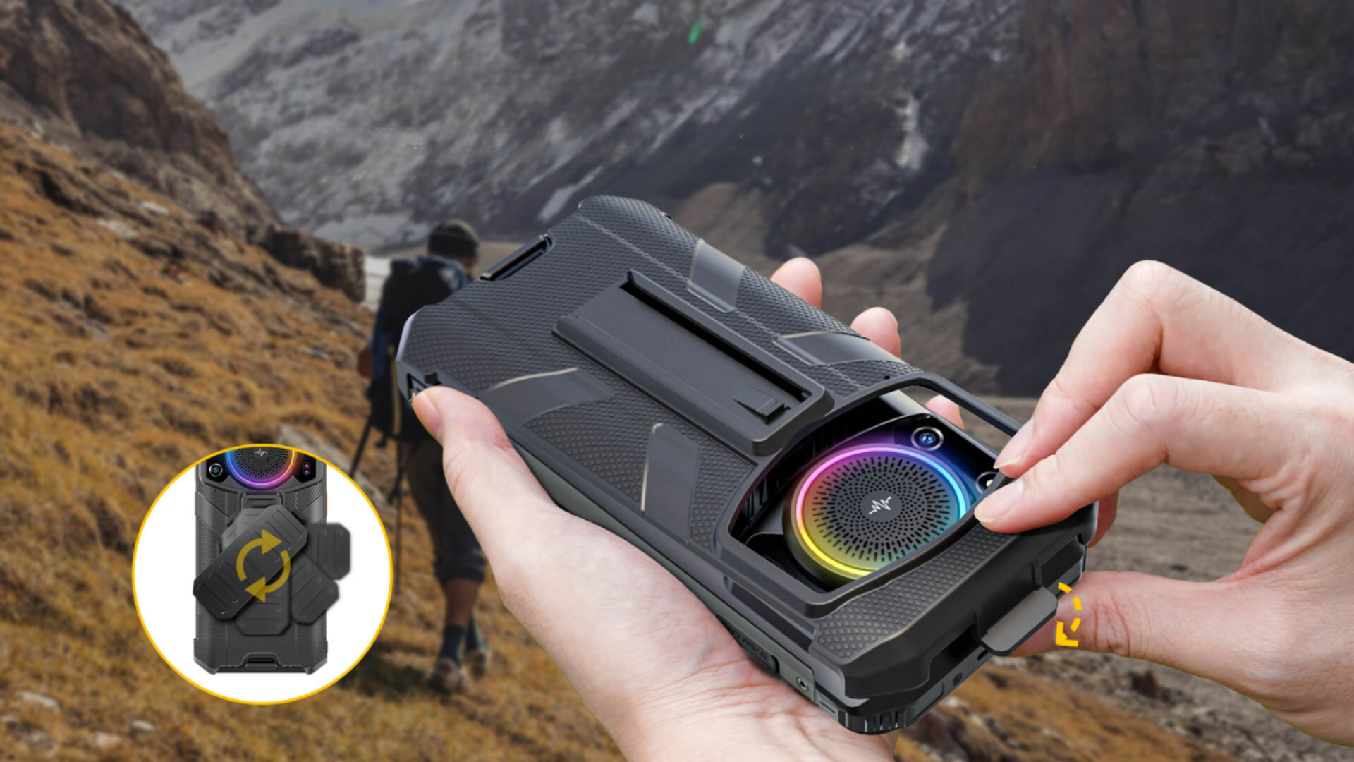 Создан для максимальной практичности и удобства, обладает зажимом для ремня, который можно развернуть на 180°. Смартфон можно надёжно закрепить на поясе с помощью карабина для быстрого доступа к устройству.